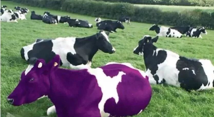 你的目光会集中在这头紫色的牛身上,从此留下深深的印象,并且一辈子不会忘记。