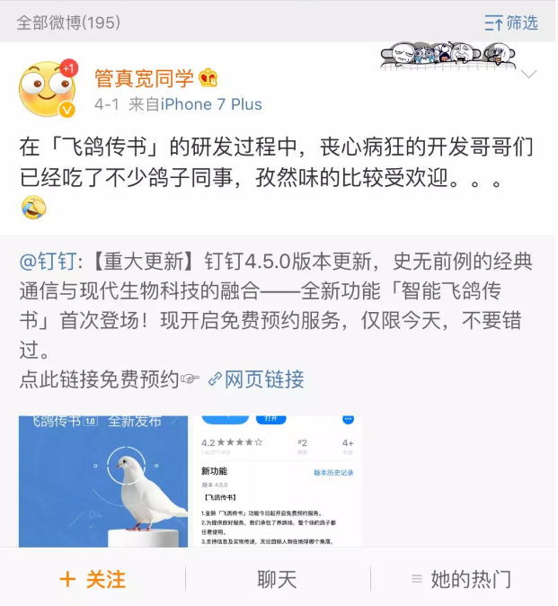 当然,这或许与钉钉的产品定位有着根本联系。“我们不是办公产品,更是一个企业社交工具”~